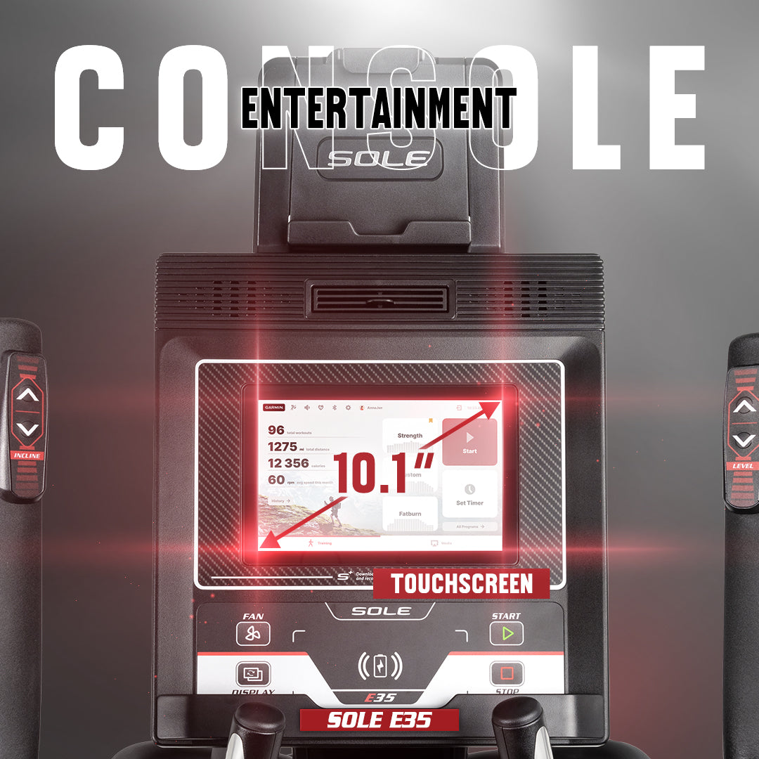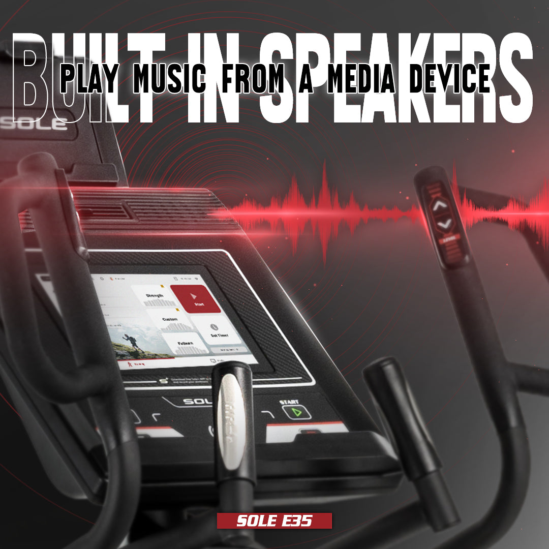 The E35 now includes an integrated tablet holder so you can use your smart devices to watch shows or follow workout routines. Also included is Bluetooth Audio Speakers so you can listen to music.